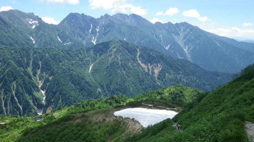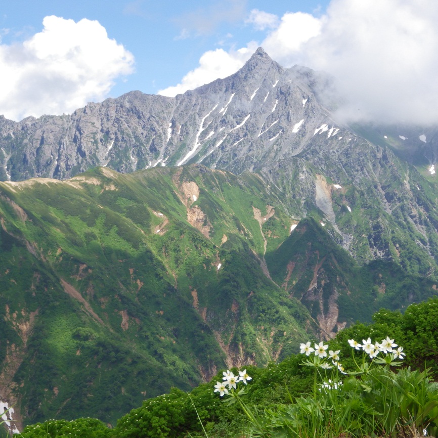 この稜線は残雪の斜面に咲き乱れる高山植物が実に素晴らしい。瑞々しさと鮮やかな色彩に何度足を止めた事だろう。