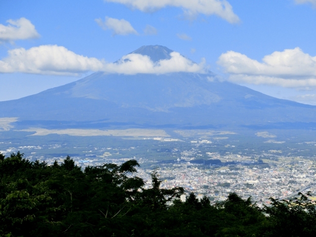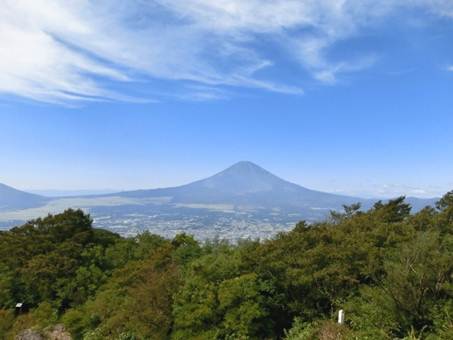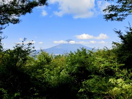 【乙女峠からの富士山】 展望台から見ると緑に包まれた富士山が |