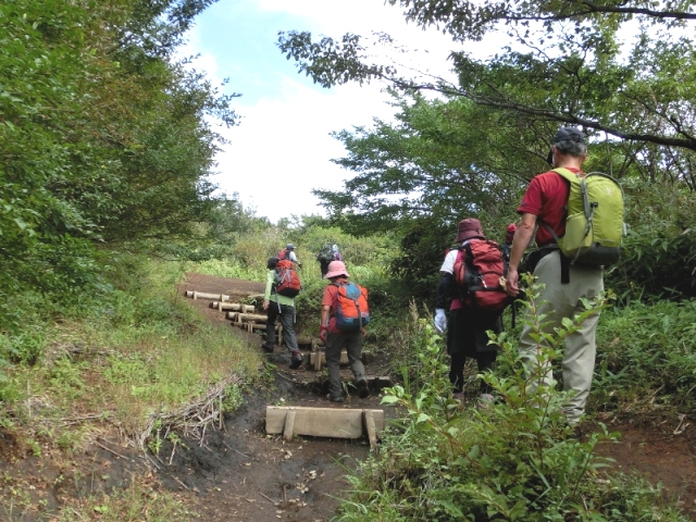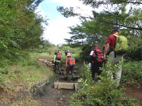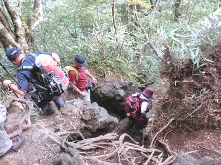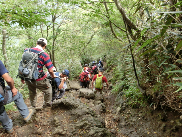 【金時山からの下り】 大きな段差を慎重に下ってゆく |