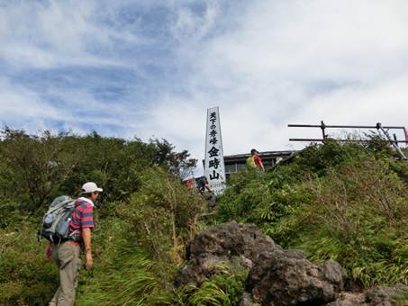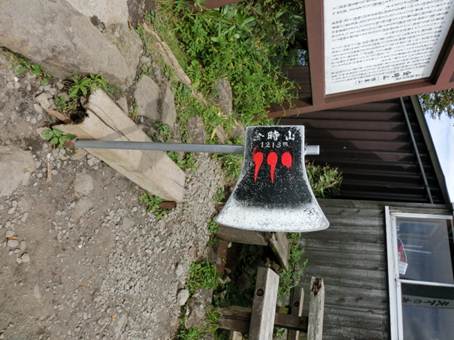【金時山直下】 特徴のある看板と山小屋が見えてきた |