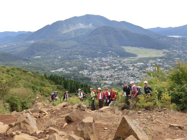 【大涌谷をバックに】 金時神社への分岐を過ぎるとガレ場に出る |