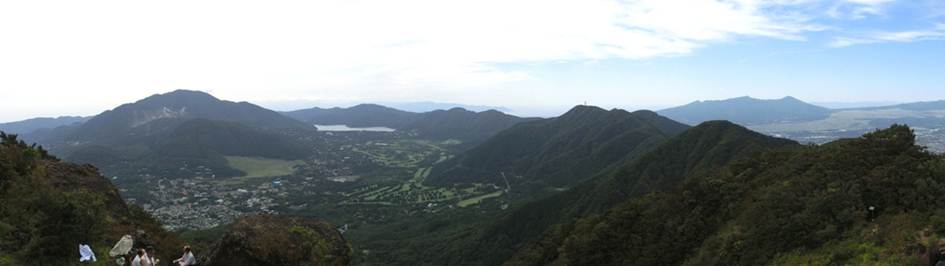 【金時山からのパノラマ】 箱根駒ヶ岳、大涌谷、仙石原、芦ノ湖が一望に 外輪山の連なりもよく分かる |