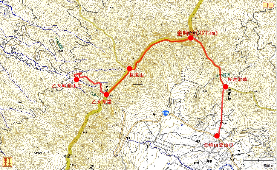 【乙女峠入口】 登山道入口は左奥へ10分程歩いたところに |