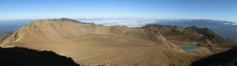 ![]() 【御嶽山外輪、二ノ池、乗鞍岳、北アルプス】 |
