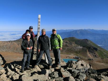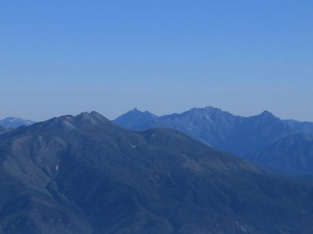 ![]() 【剣ヶ峰から見る 乗鞍岳と穂高、槍ヶ岳】 |