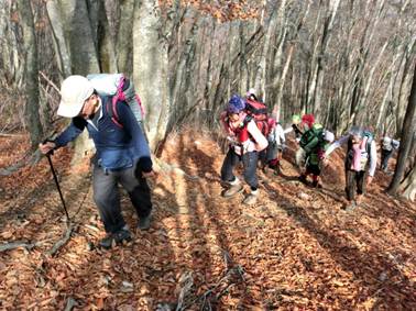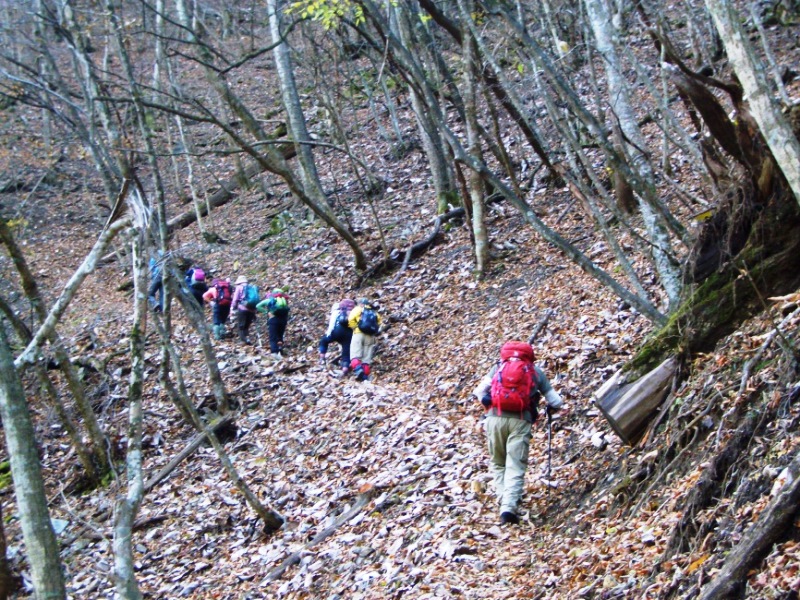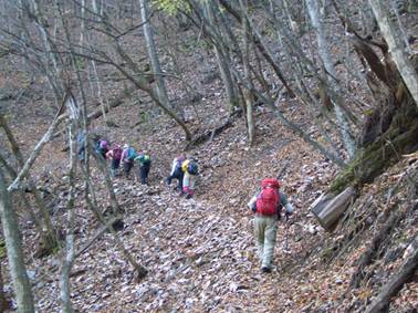 【稲村岩からの登り 】 急登で全員上を見る余裕なし |