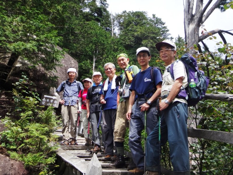 急峻な桟道に汗を流す! |