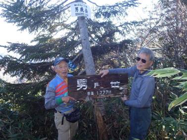 1701mピークには「栗石山」の看板があり、前方(南)に男鹿岳が大きく見える。