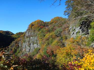 快晴に恵まれ、不動滝、抱き返しノ滝は紅葉。滝、青空で素晴しい眺めだった。