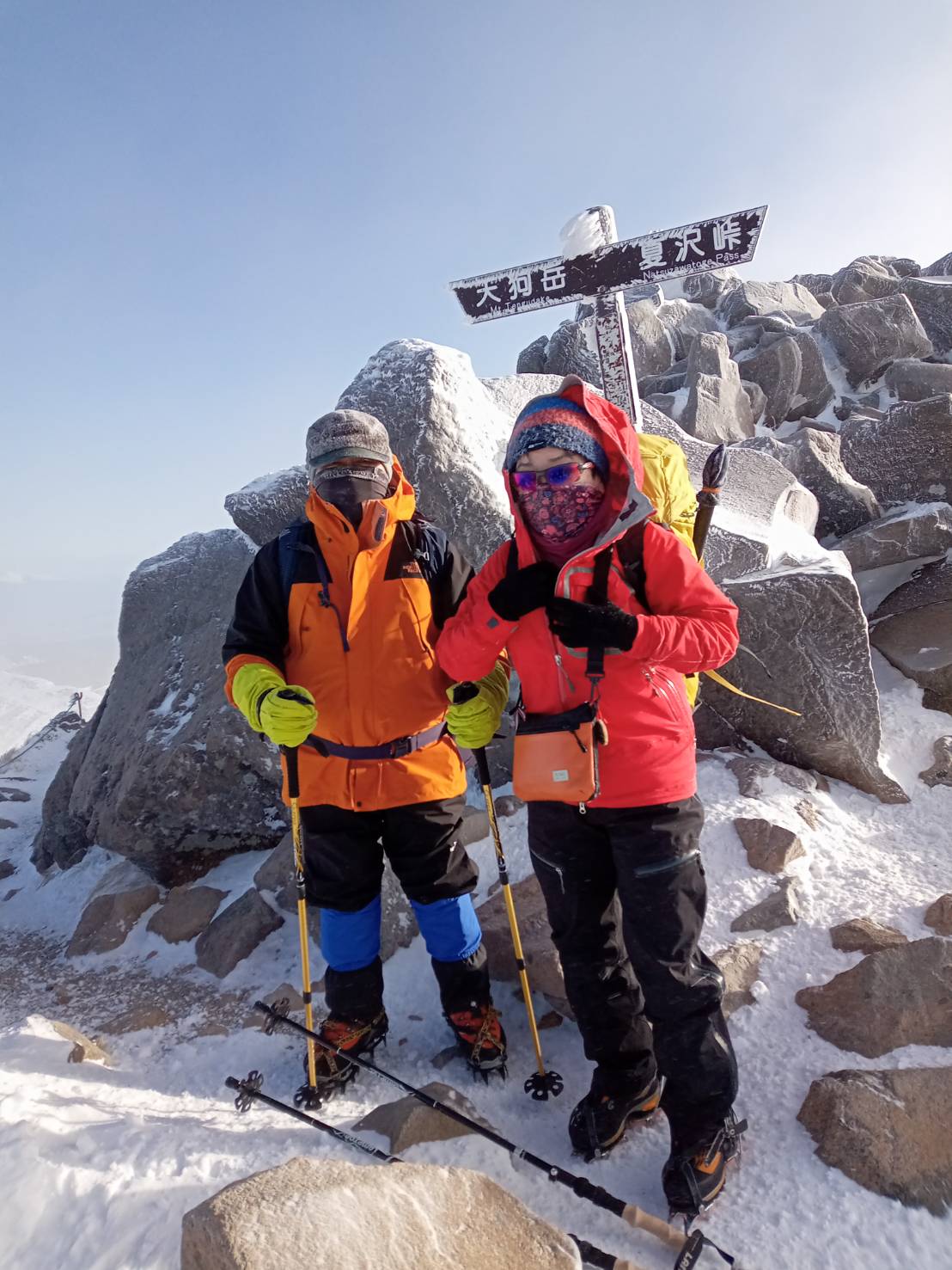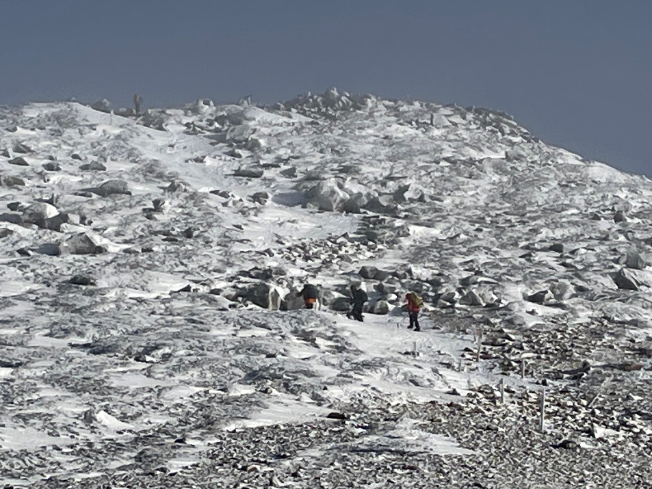 ◍31日朝、マイナス18℃のため出発を遅くしたが、尾根は強風と寒さのため東天狗岳は断念した。代わりに夏沢峠へ行って硫黄岳の展望を楽しんだ。